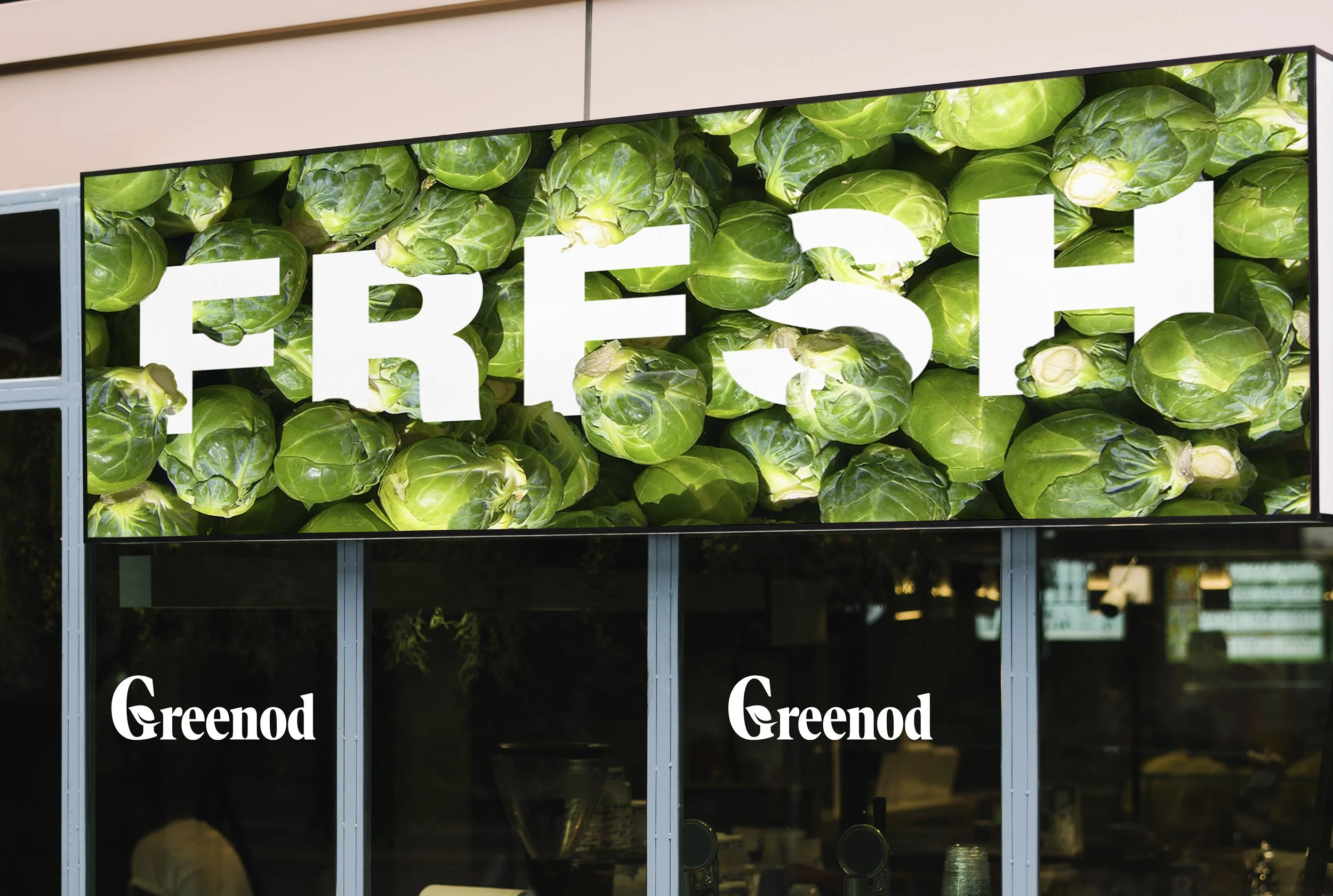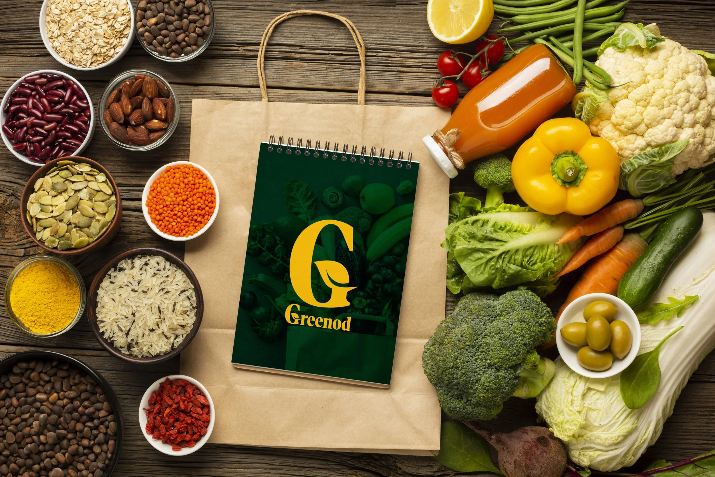 Greenod is a conceptual grocery brand I created to demonstrate my ability to build a company identity entirely from the ground up. The vision was a modern market offering 100% organic, vegan, and vegetarian food sourced from local farmers — free of preservatives and full of freshness. The name Greenod came from the idea of giving a “nod in the right direction” toward clean, honest eating and sustainable living.